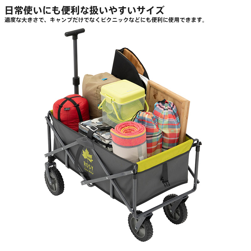 LOGOS ロゴス アウトドア キャリーカート 4輪 折りたたみ ワンタッチ おすすめ 大型 ROSY ラゲージキャリー Grロゴ●たくさんの荷物をラクラク運べる!扱いやすいサイズのキャリーカート●日常使いにも便利な扱いやすいサイズ適度な大きさで、キャンプだけでなくピクニックなどにも便利に使用できます。