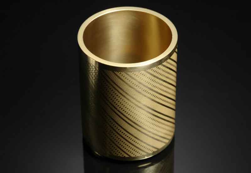 美しく磨きがかけられた表面にはブラスト加工により日本の伝統的な真田紐の折り目をモチーフにしたグラフィックを施しています。