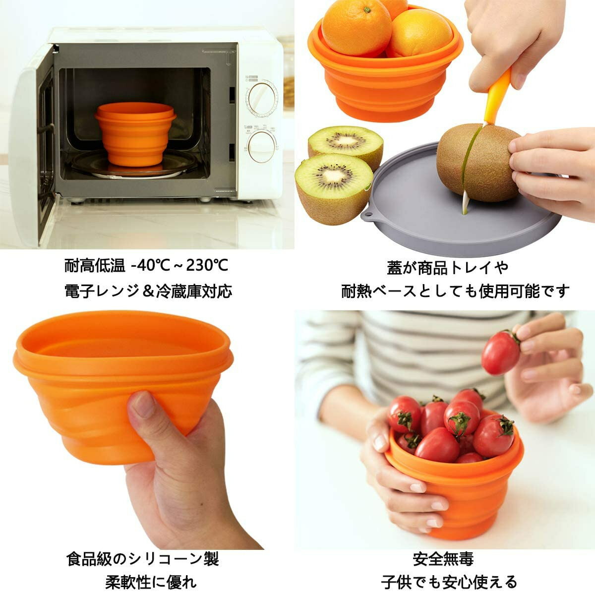 【耐高低温】:マイクロ波加熱対応ボウルの耐熱温度は-40℃〜230℃になります)。